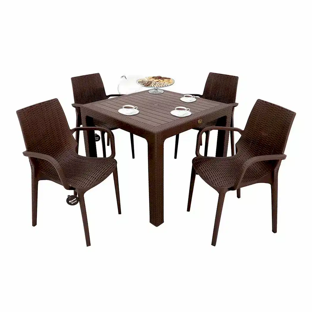 | 90x90 Bir adet masa, 4 adet koltuktan oluşmaktadır. Ürün İçeriği: Elit Masa 1 Adet Nirvana Koltuk 4 Adet Masa Boyutları: Genişlik : 90 cm Uzunluk : 90 cm Yükseklik : 75 cm Koltuk Boyutları: Genişlik : 44 cm Derinlik : 50 cm Yükseklik : 88 cm Masa: · Cam elyaflı polipropilen malzemeden üretilen rattan veya wood efektli masalar konfor ve kalitede şıklığı benimseyenler için vazgeçilmez üründür. · Masalar içerisinde 2 adet 2mm özel üretim demir şase bulunmaktadır. Bu sayede eğilme ve kırılma azamiye indirgenmiştir. · Koltuk: · Yüksek esnekliğe sahip, gerilmeye karşı dayanıklıdır. · Üretiminde cam elyaflı malzeme kullanılmıştır. Bu sebeple daha dayanıklı ve uzun ömürlüdür. · Oturma ve sırt bölgesi ergonomiktir. · Üst üste maksimum istifleme özelliği ile fazla yer kaplamaz. · Sert hava koşullarına dayanıklılığı sebebi ile iç ve dış mekanlarda rahatlıkla kullanılmaktadır. Genel Özellikler: · UV katkısı sayesinde güneş ışınlarına karşı uzun süre dayanıklıdır. · Ekonomik olmaları dışında kaliteli ve uzun ömürlü plastikler tercih edilmektedir. · Antistatik katkısı sayesinde toz tutmaz. Su ve yumuşak fırça ile kolay temizlenir. · Tüm Mekanlara Uyum Sağlar! · Kafe, Otel, Bahçe, Restoran, Ev, Mutfak, Balkon, Teras, Havuz Kenarı ve diğer tüm İç ve Dış Mekanlar için kullanımı idealdir. |