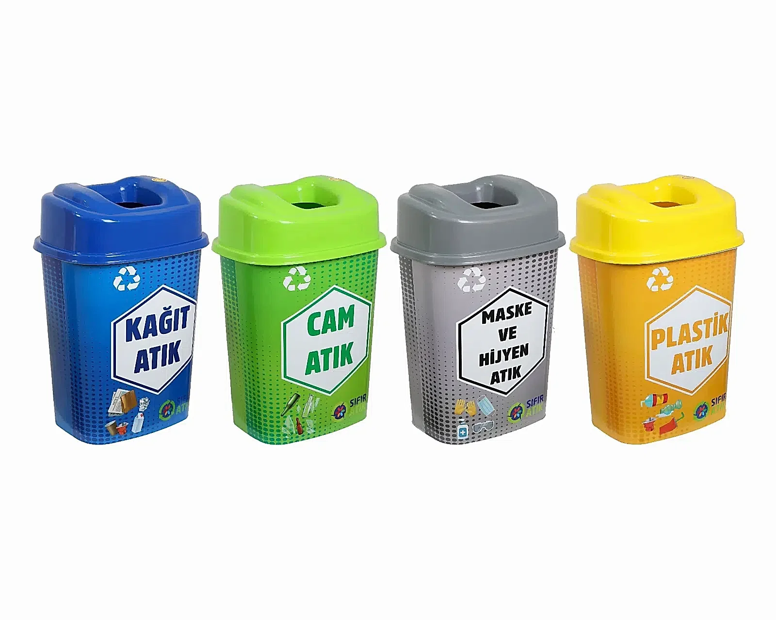 4 Adet 60 Lt Atık Kutusu (1 Adet Kağıt Atık Kutusu - 1 Adet Cam Atık Kutusu - 1 Adet MAske ve Hijyen Atık Kutusu - 1 Adet Plastik Atık Kutusu)